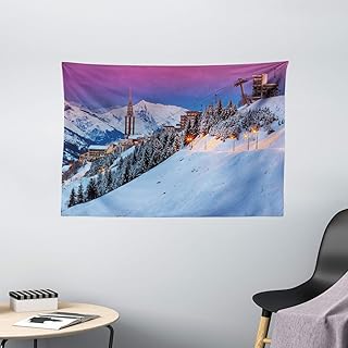 jenny-shop Tapisserie d'hiver, Paysage de Lever de Soleil d'hiver et Station de Ski Forêt de pins épicéa Alpes françaises, Large tenture 59 * 59 Pouces