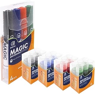ESENG® Magic WM-218 marqueur pour tableau blanc et cartouche d'encre WM-218T, paquet comprenant les marqueurs (1X4 couleurs) et la cartouche d'encre (1X6 noir+1X6 bleu+1X6 rouge+1X6 vert)