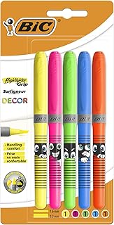 BIC Highlighter Grip Decor Surligneurs Pointe Biseautée - Couleurs Assorties, Blister de 5