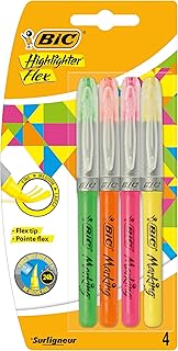 BIC Highlighter Flex Surligneurs à Pointe Souple et Flexible - Couleurs Fluo Assorties, Blister de 4