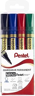 Pentel N850/4 Pochette de 4 Marqueurs permanents pointe conique moyenne Noir/Rouge/Bleu/Vert