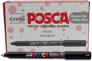 Uni-Ball Posca Marqueur Pointe ogive Ultra fine - Noir (Lot de 12)