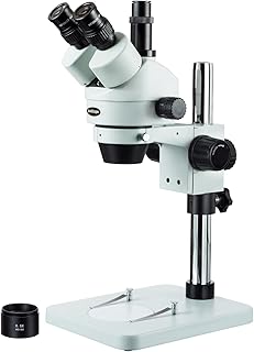 AmScope SM-3BX Microscope Professionnel avec Zoom stéréo, oculaires WH10x, grossissement 3,5 x 45x, Zoom 0,7 x 4,5 x, éclairage ambiant, Support de Perche, Comprend Une lentille de Barlow 0,5 x