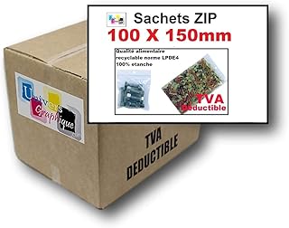 lot de 100 Sachets 100 x 150 mm fermeture zip Transparent. Sachet fermeture zip 10 x 15 cm 50u sac plastique compatible alimentaire et congélation de marque UNIVERS GRAPHIQUE REF UGS07-100. Facture avec T.V.A déductible