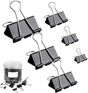 HyAiderTech Pinces Double Clip - Lot de 90 Foldback Pinces Papier Métal Binder Clips pour notes Papier à lettre Clip Fournitures de bureau, 6 tailles assorties, Noir