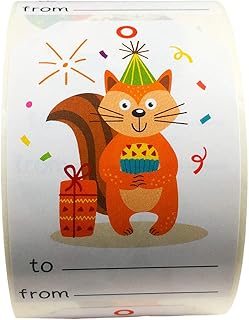 Lot de 50 étiquettes de cadeau d'anniversaire avec motif animal - 4 motifs différents - 5,1 x 7,6 cm