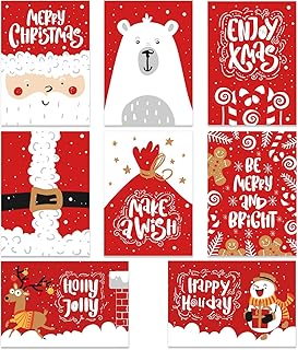 Cartes de Noël avec Enveloppes et Autocollants, 8 cartes de vœux amusantes, cartes postales de Noël pour enfants Joyeux Noël