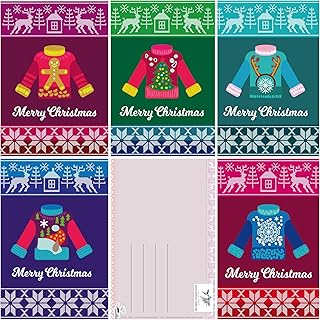 Paquet de 48 cartes de vœux'Joyeux Noël' - Ohuhu Noël Hiver Joyeuses fêtes Cartes de voeux de 6 motifs avec enveloppes et autocollants de remerciement, 10 x 15 cm