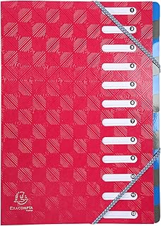 Exacompta 56224E Trieur Harmonika 1928 avec dos extensible 12 compartiments couverture en lustrée pelliculée gaufrée 600 gm², format 24,5x32 cm pour classement de documents format A4 Framboise