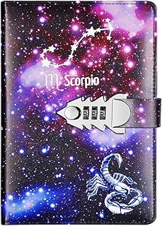 NectaRoy Carnet de Notes avec Serrure à combinaison - Constellation Journal Intime avec Cadenas - Cahier Journal Bloc-notes Secret en PU Cuir Pour Bureau - Journal intime fille, Taille 215x150mm