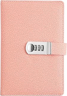Cuir PU Journal bloc-notes ,Carnet de Notes avec Serrure à combinaison , Carnet de voyage Journal bloc-notes avec serrure à combinaison pour notes et dessins pour homme et femme Tpn104 Rose
