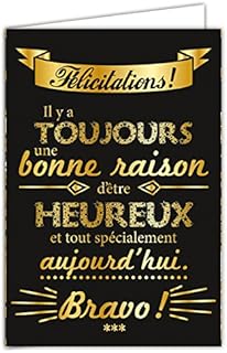 Afie 69-7051 Carte félicitations texte heureux avec dorure Format 12 x 17,5 cm + Enveloppe Blanc