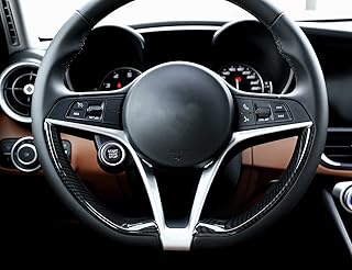 TOOGOO Garniture de Bande de Décoration de Volant de Style Fibre de Carbone Véritable pour Alfa Romeo Giulia Stelvio 2017 2018 2019 Accessoire de Voiture